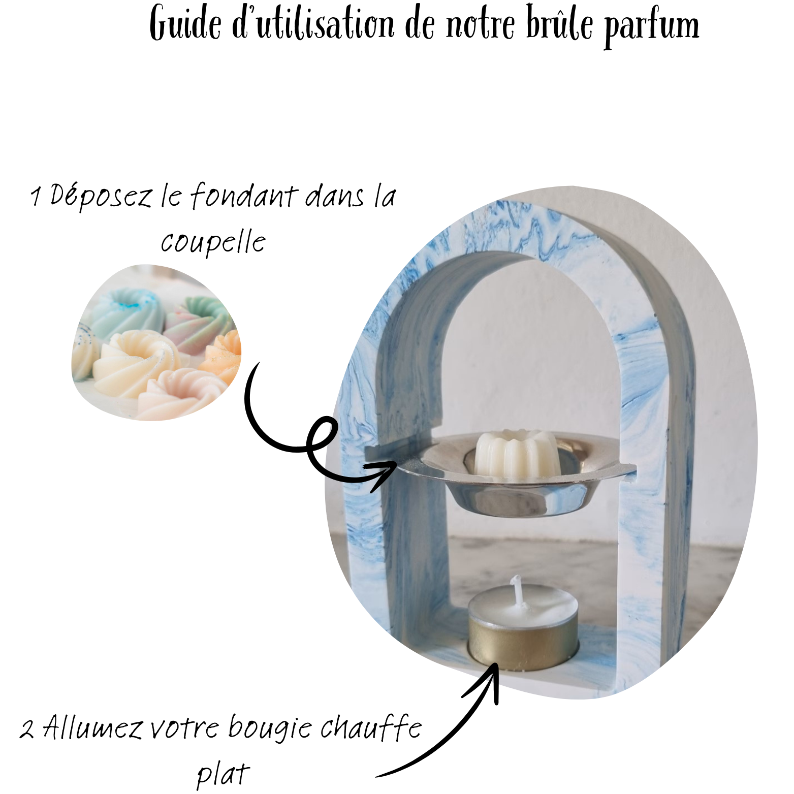• Avec le brûleur, il faudra déposer le fondant (parfois, il faut le casser en petit morceau, car certains fondants sont vendus en grand format) dans la coupelle. 2. Ensuite déposez une bougie chauffe plat (disponibles sur la boutique) et l’allumer. Cette dernière va venir chauffer le récipient et y faire fondre votre fondant.