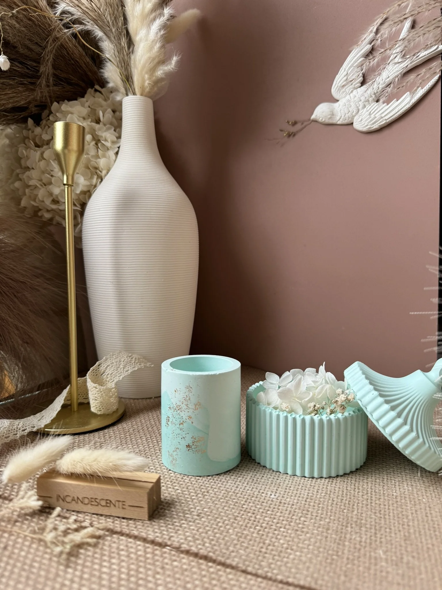 Petit pot bougie/vase pour cadeau évènement en plâtre