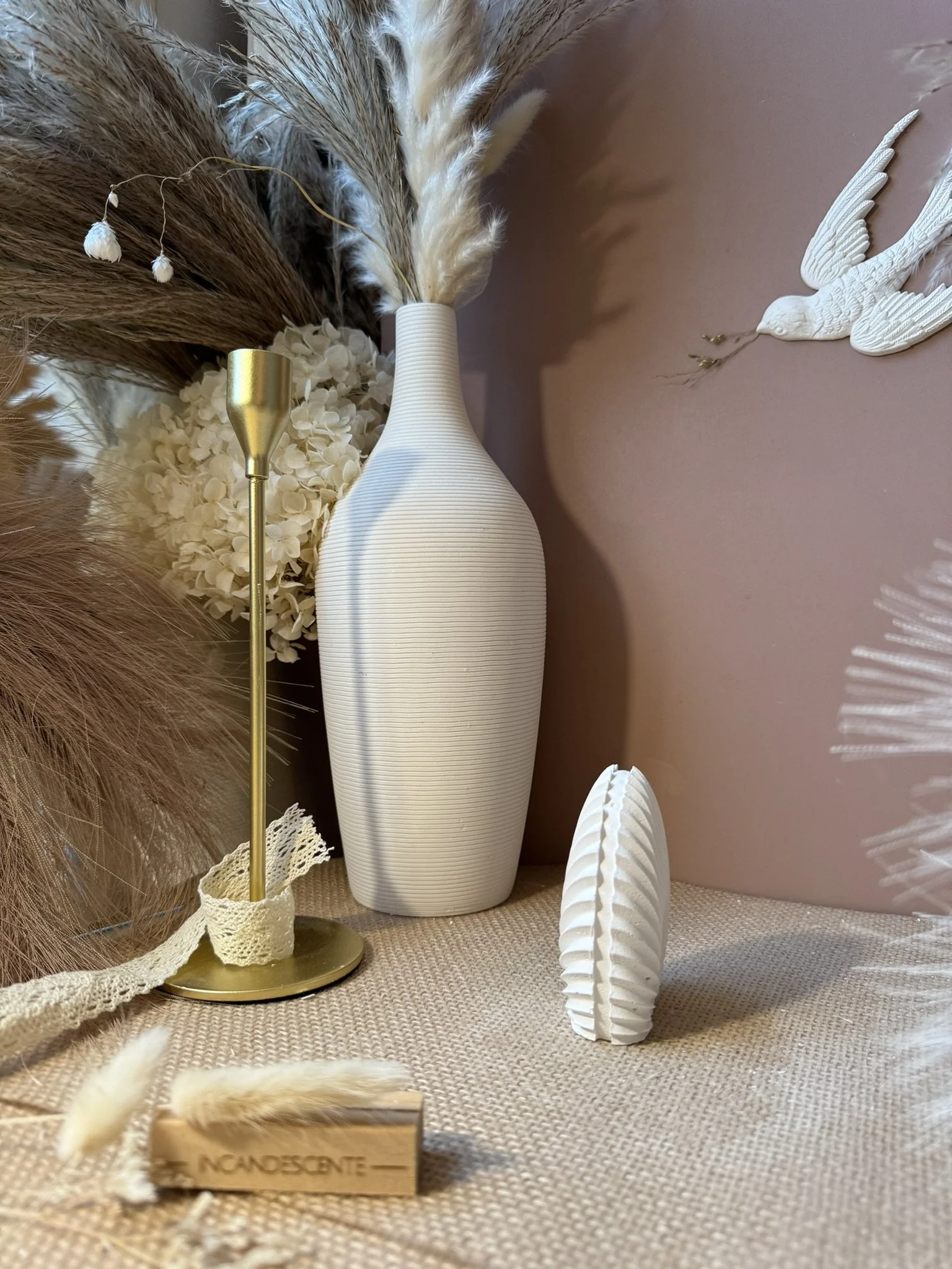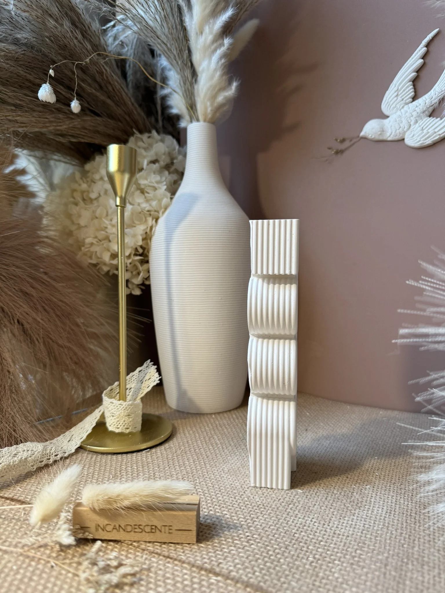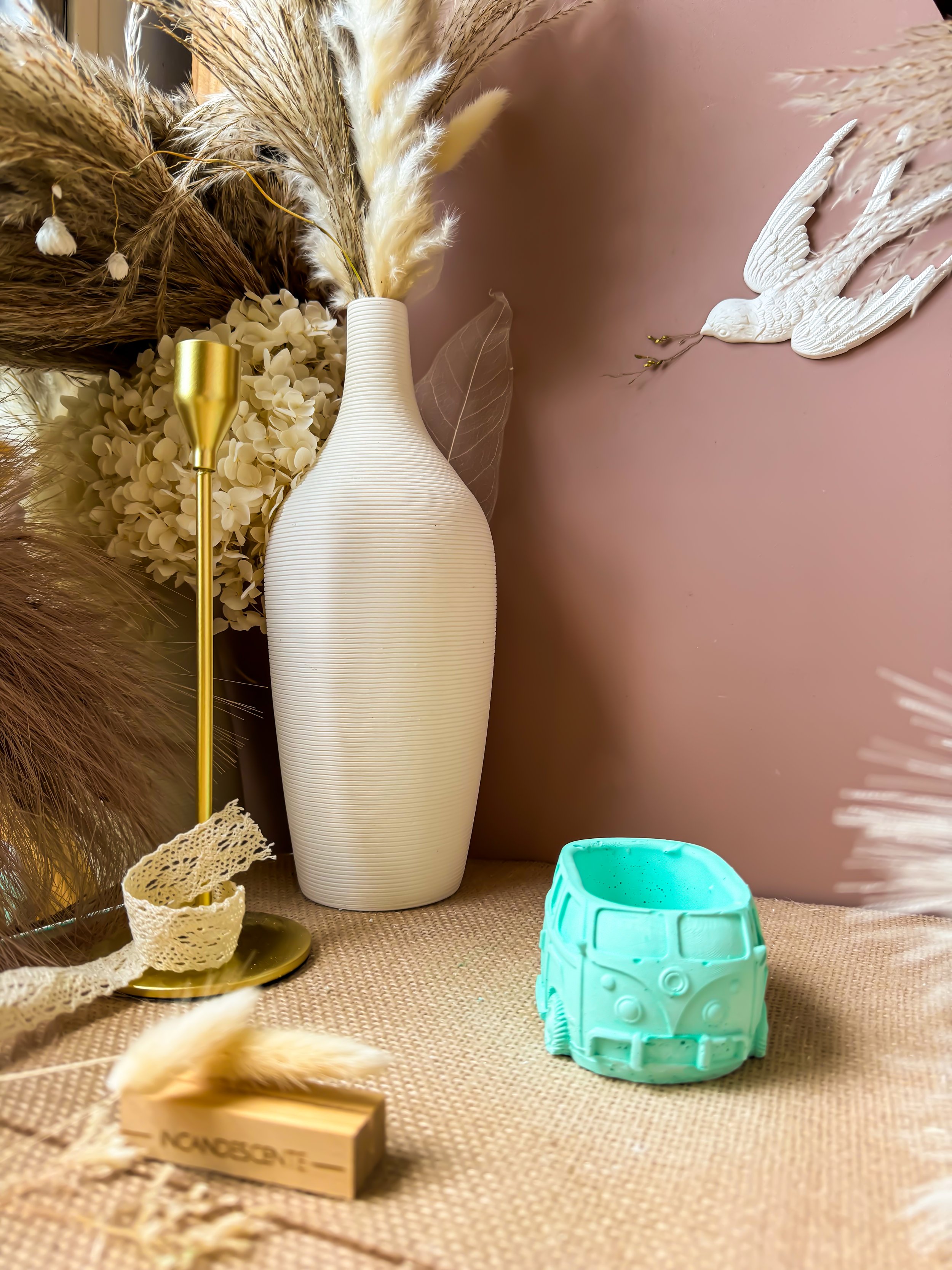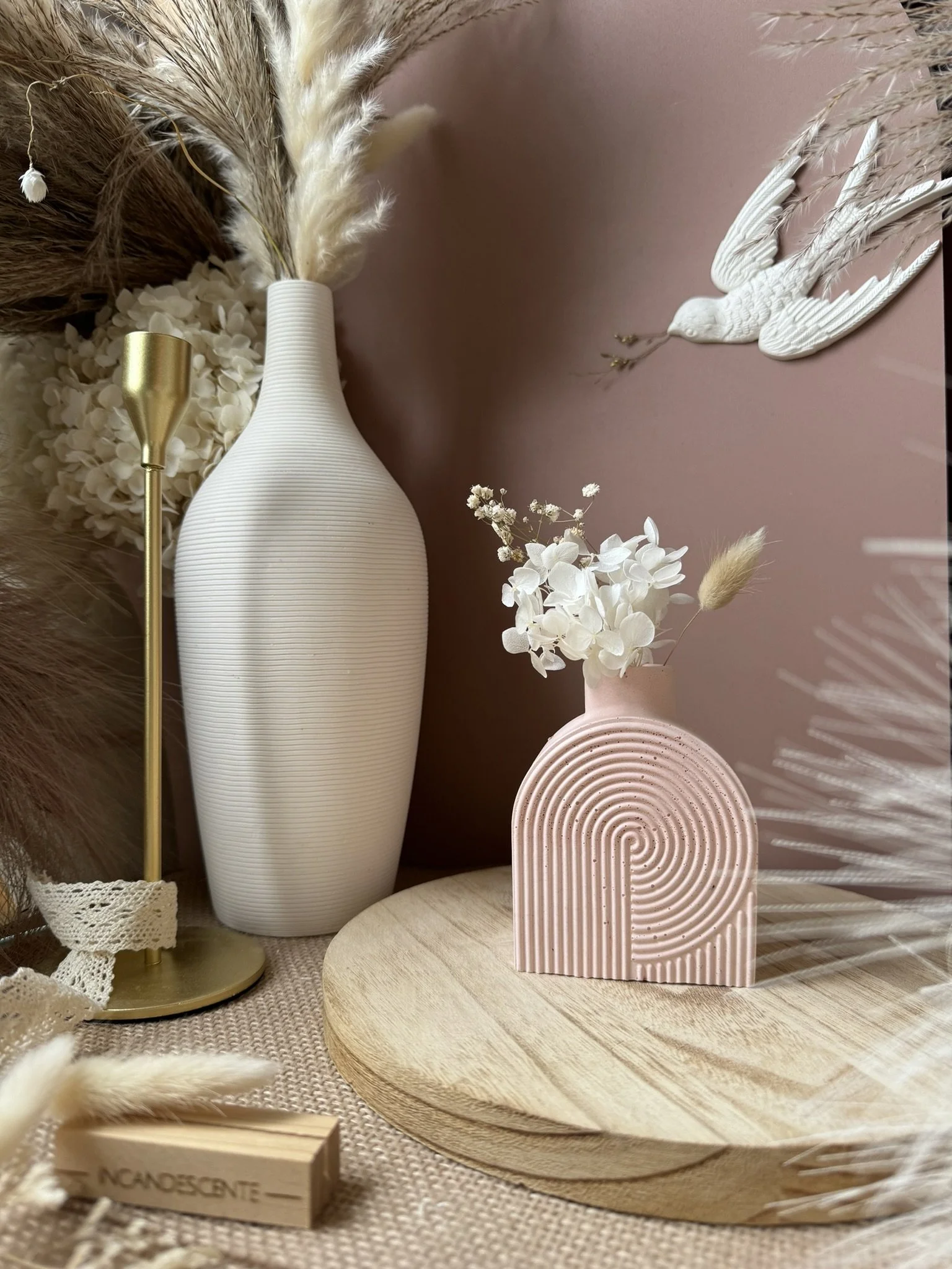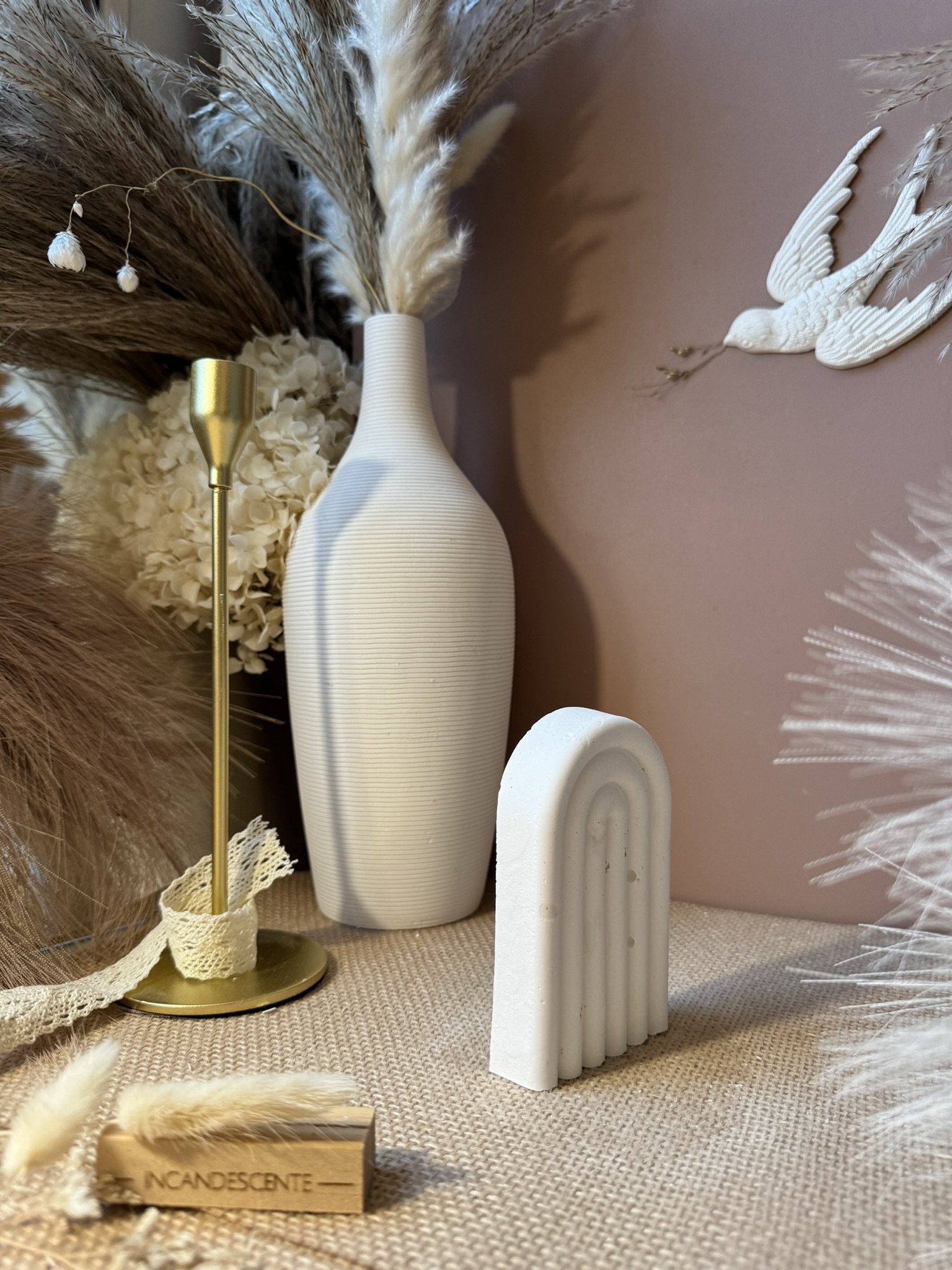 Petit pot rayures verticales bougie ou vase avec fleurs séchées en plâtre