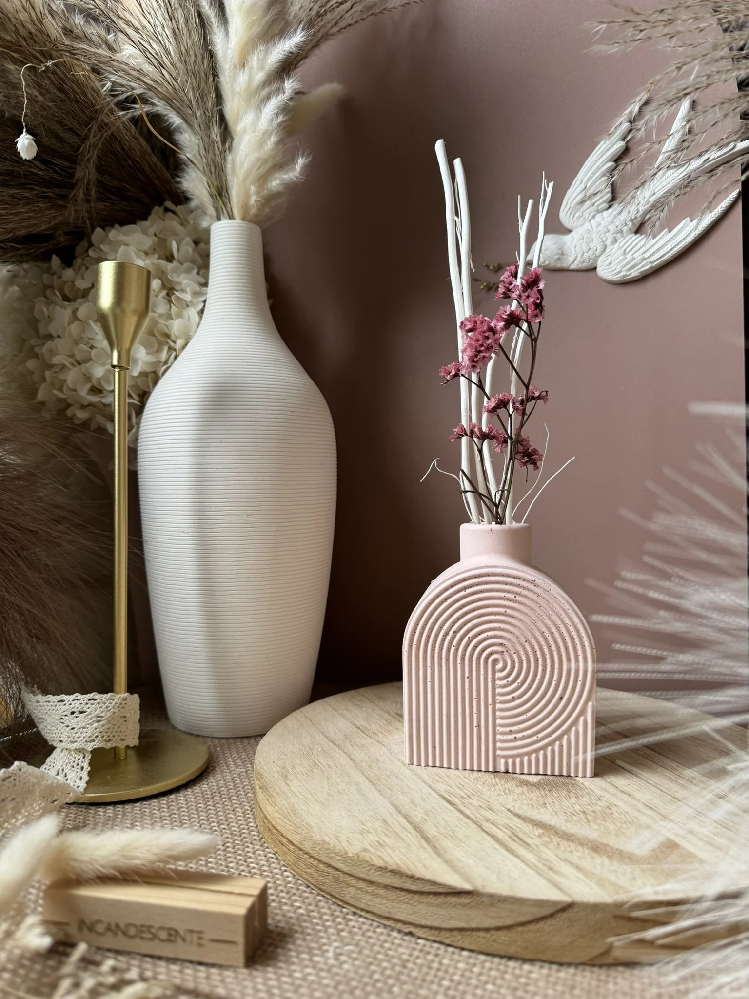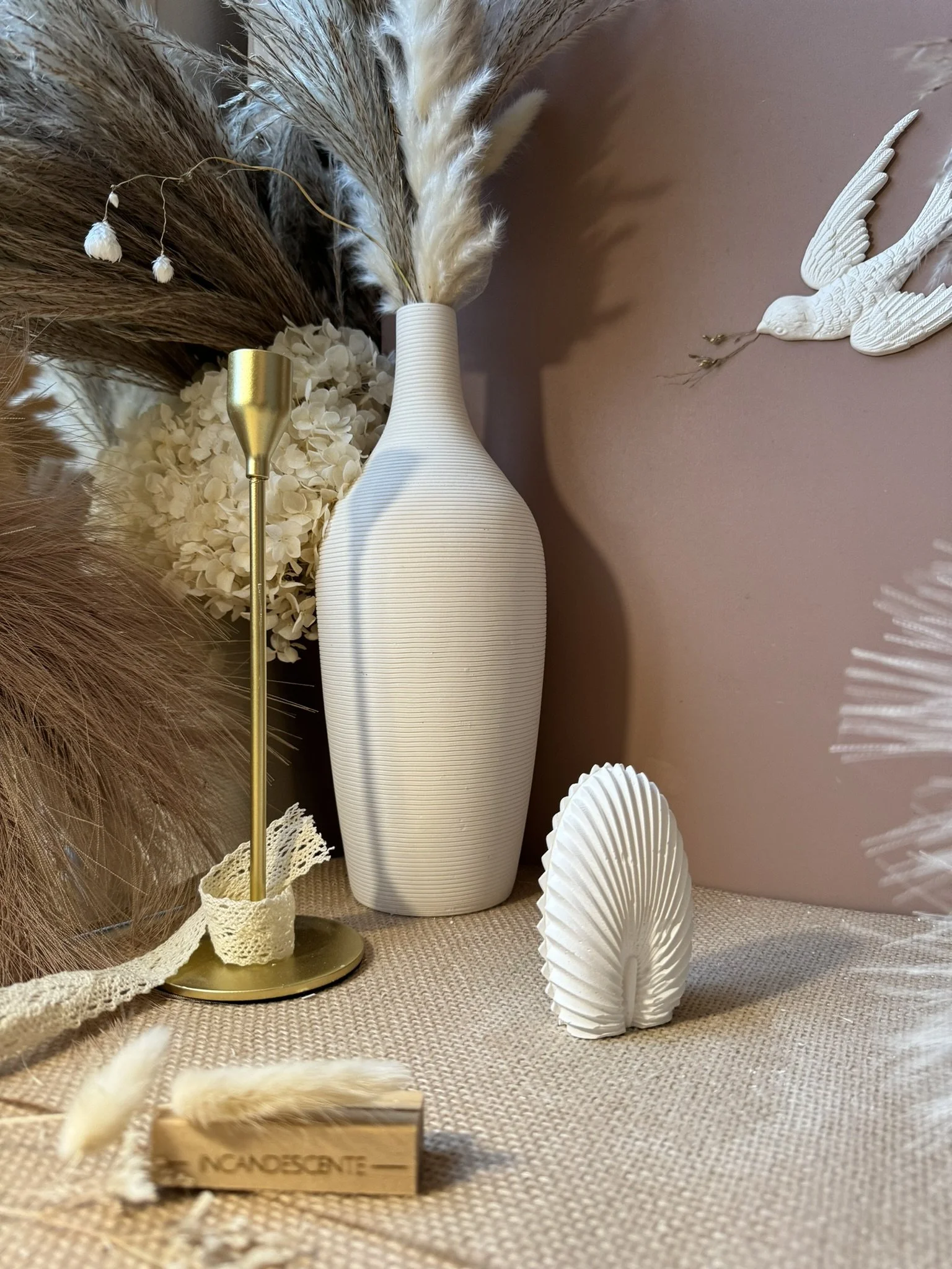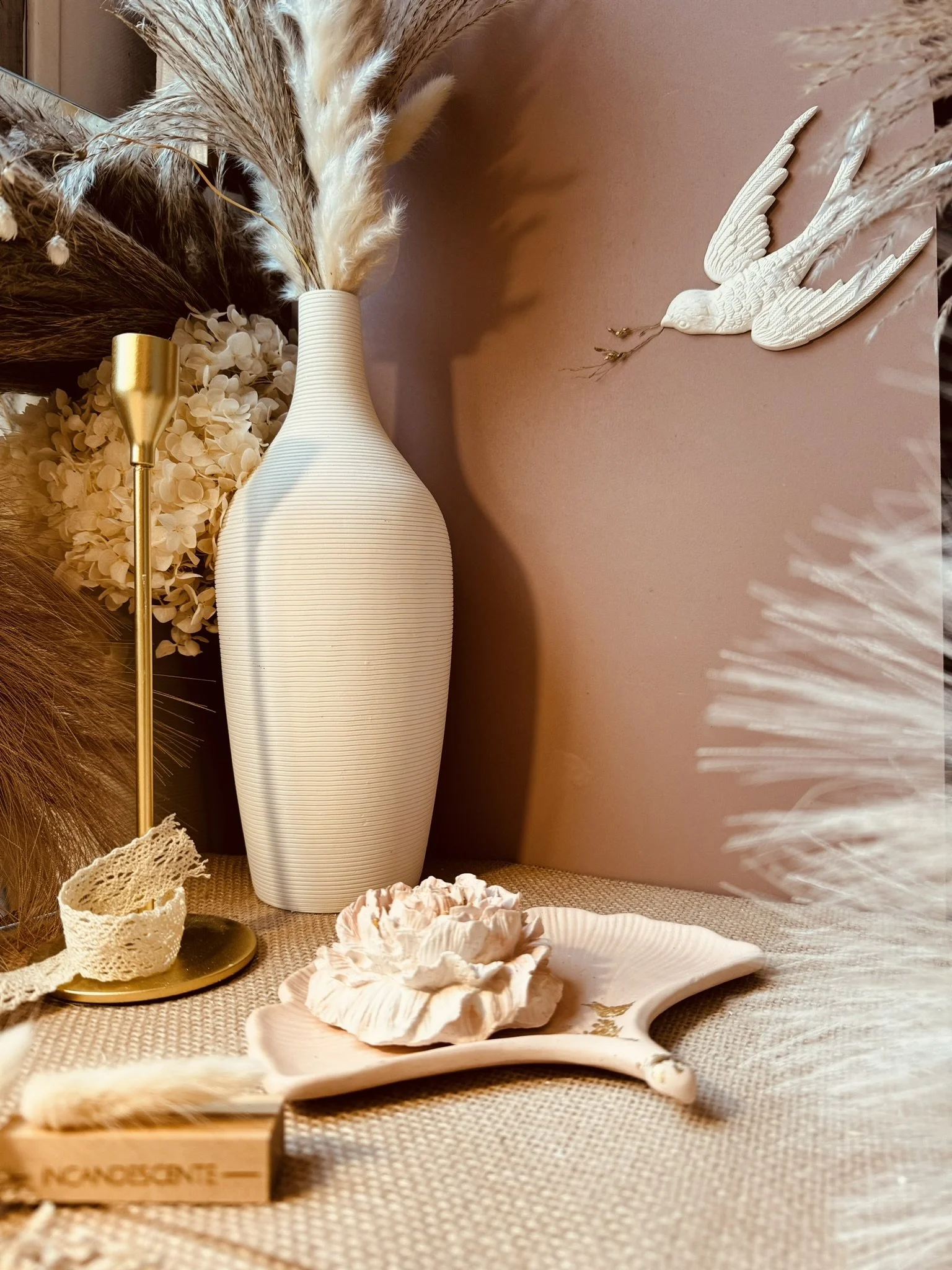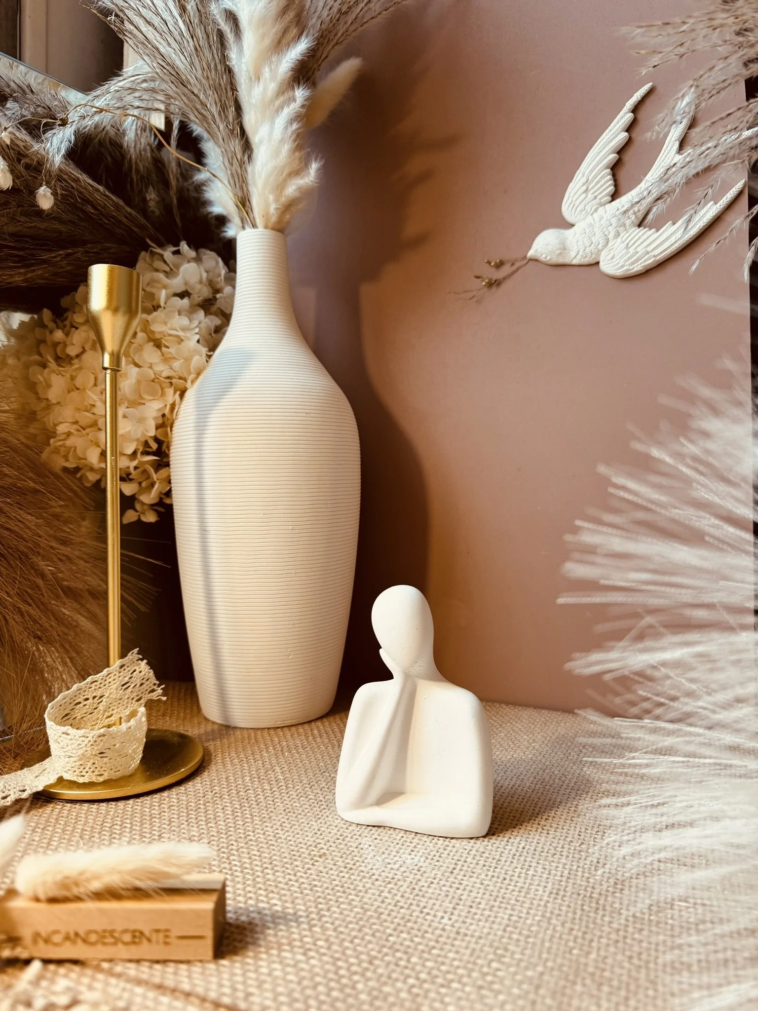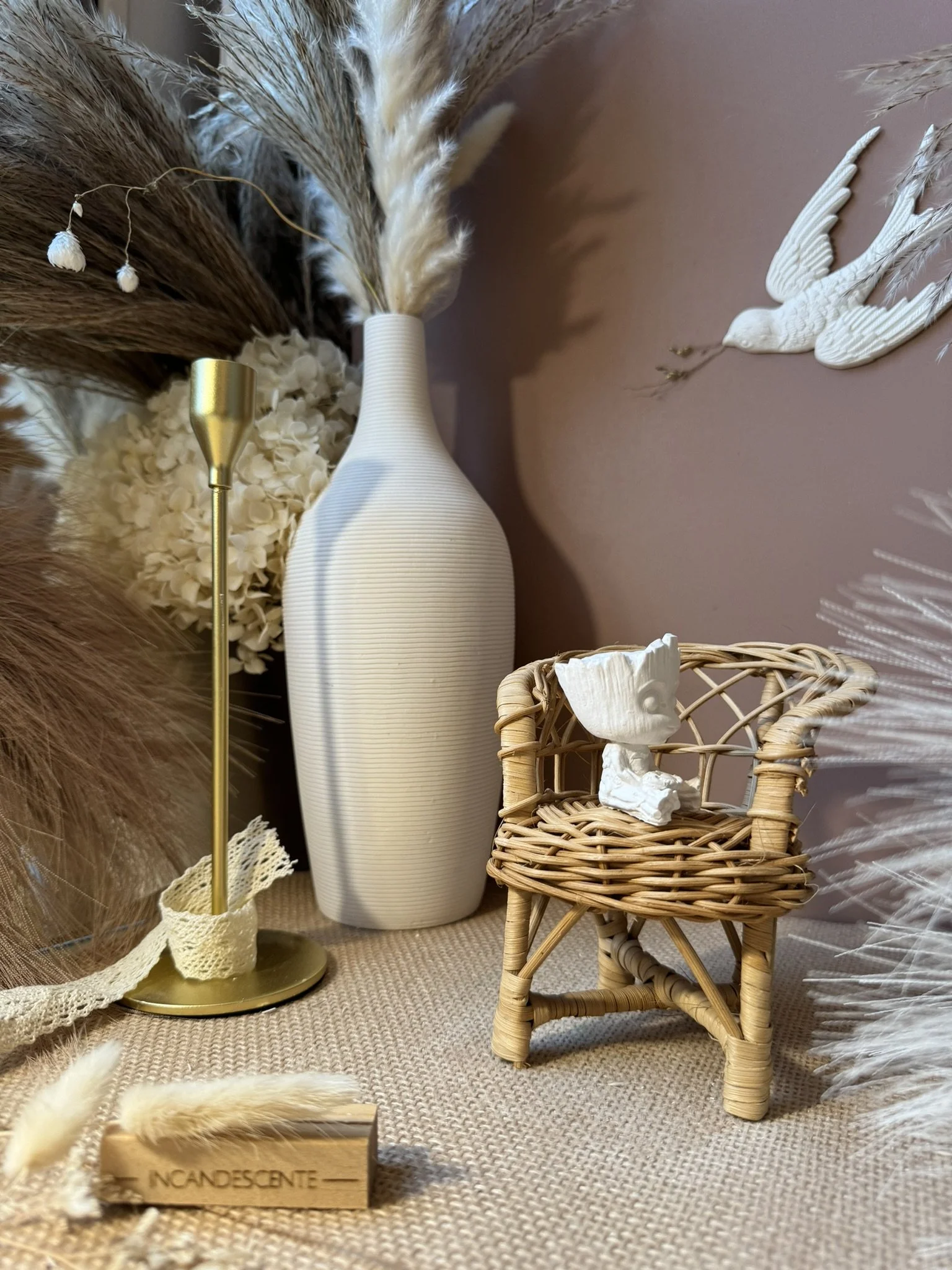 Petit pot rayures verticales bougie ou vase avec fleurs séchées en plâtre
