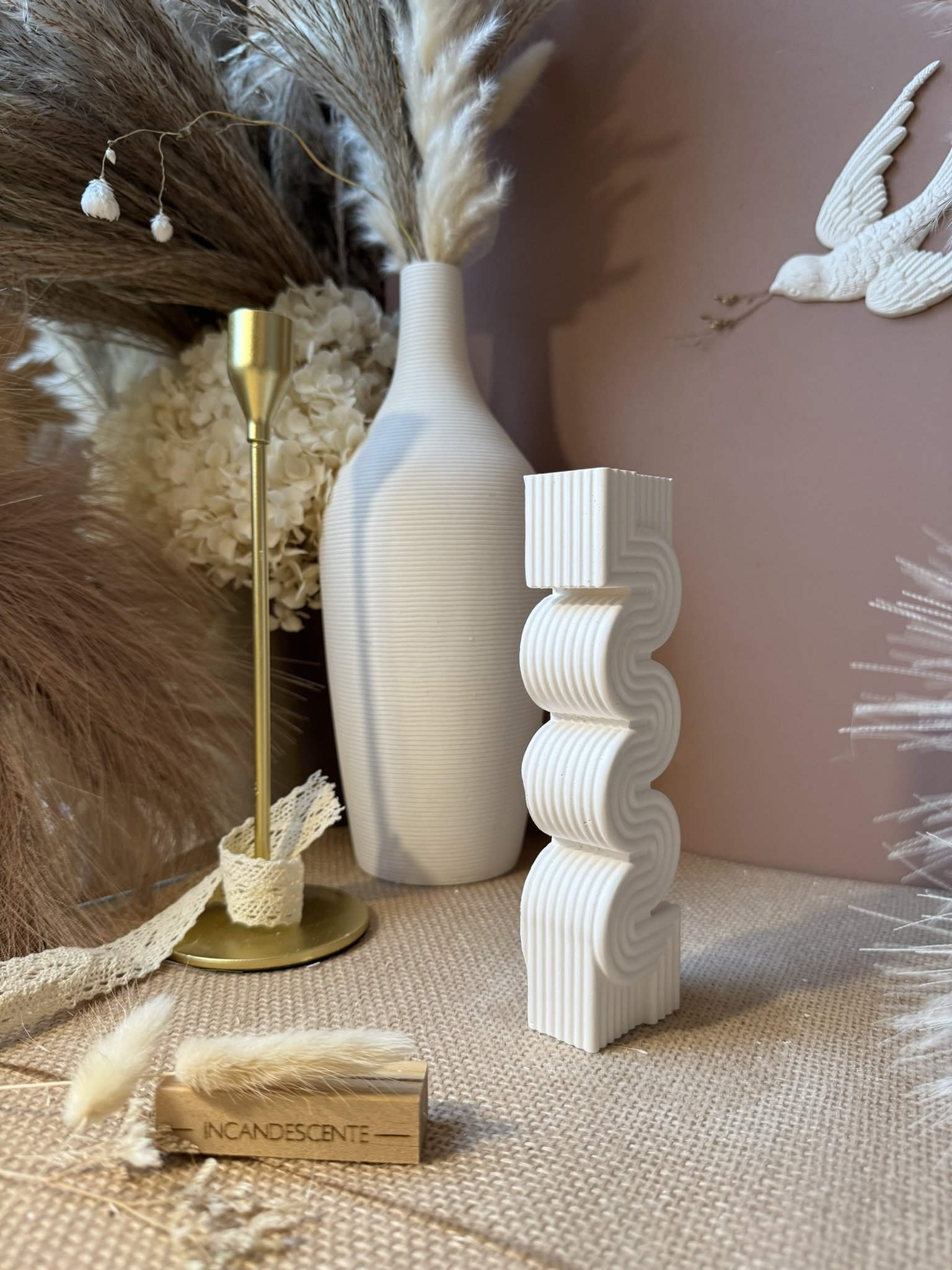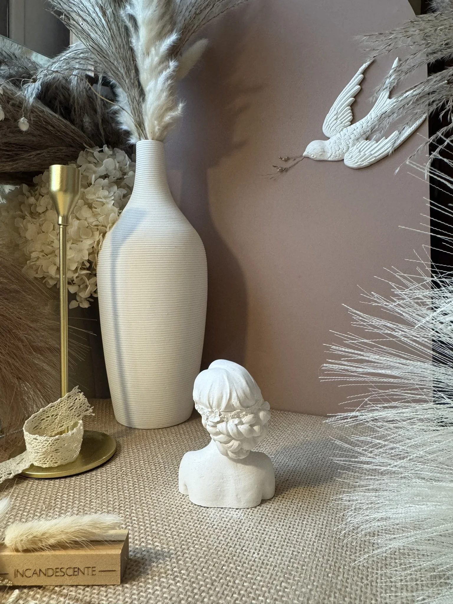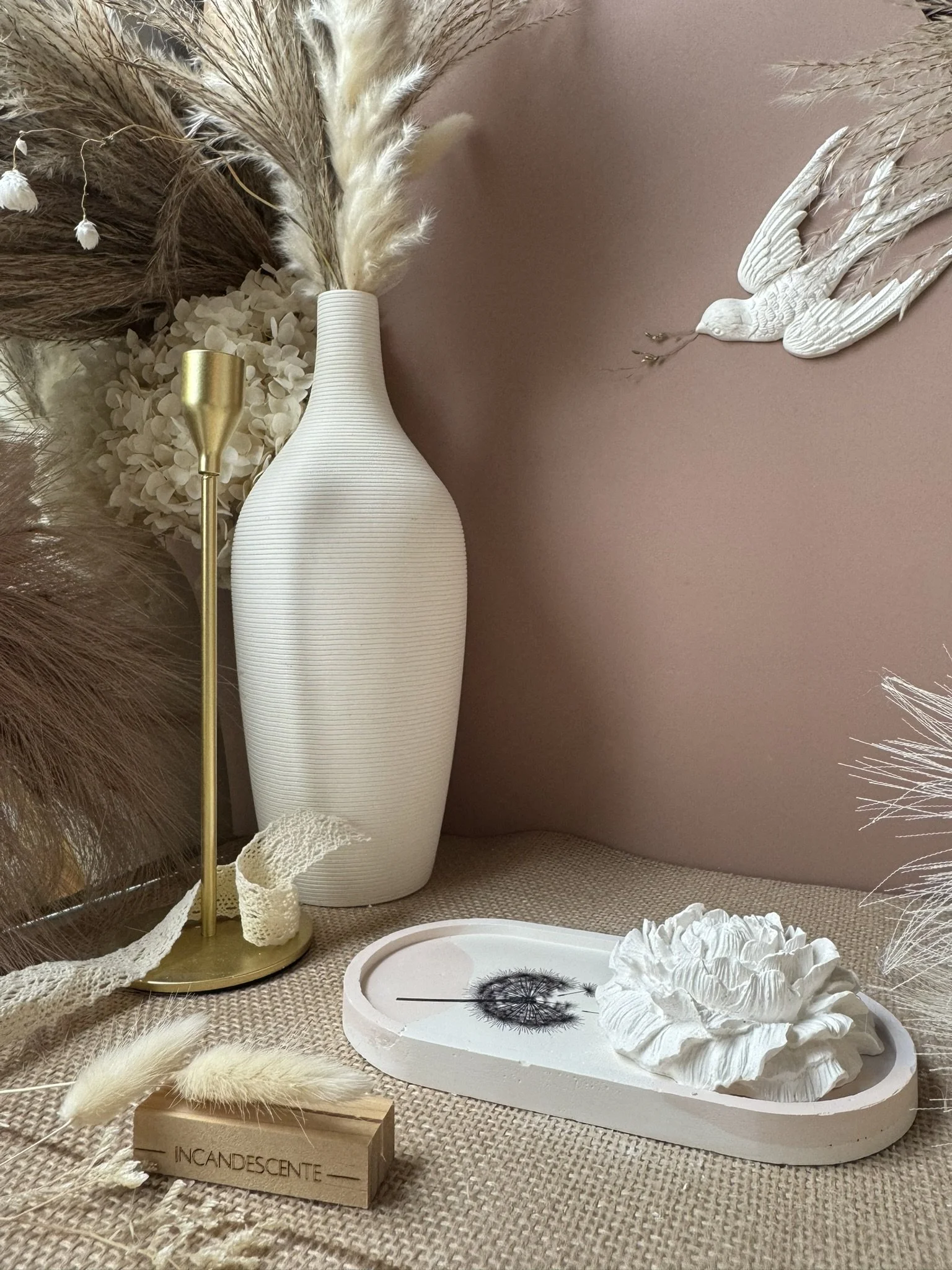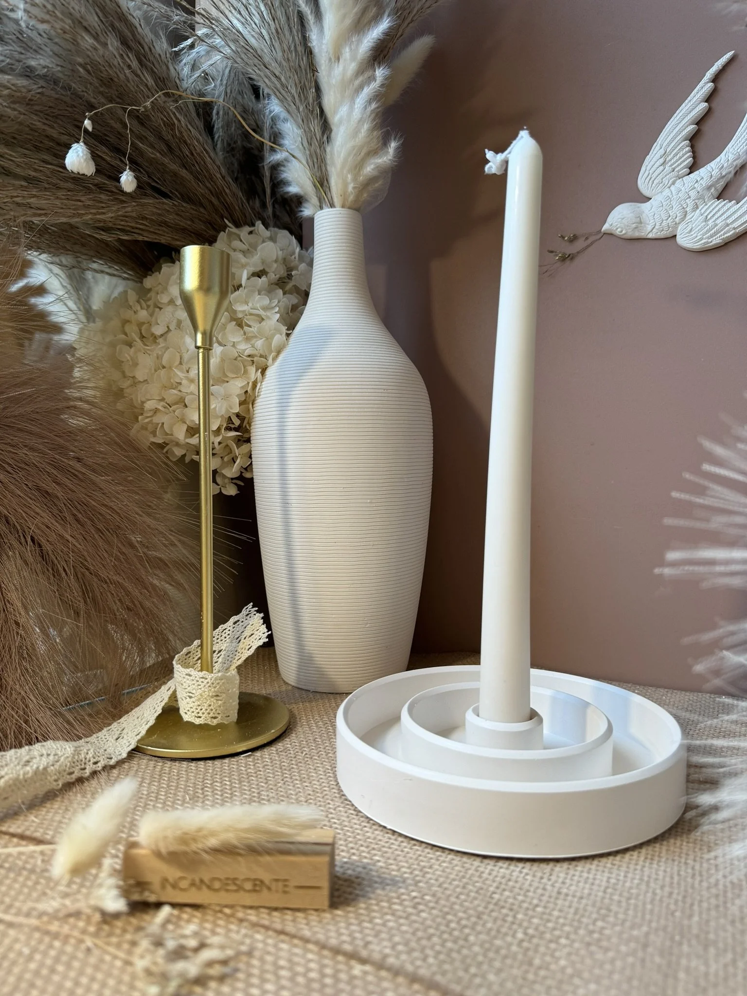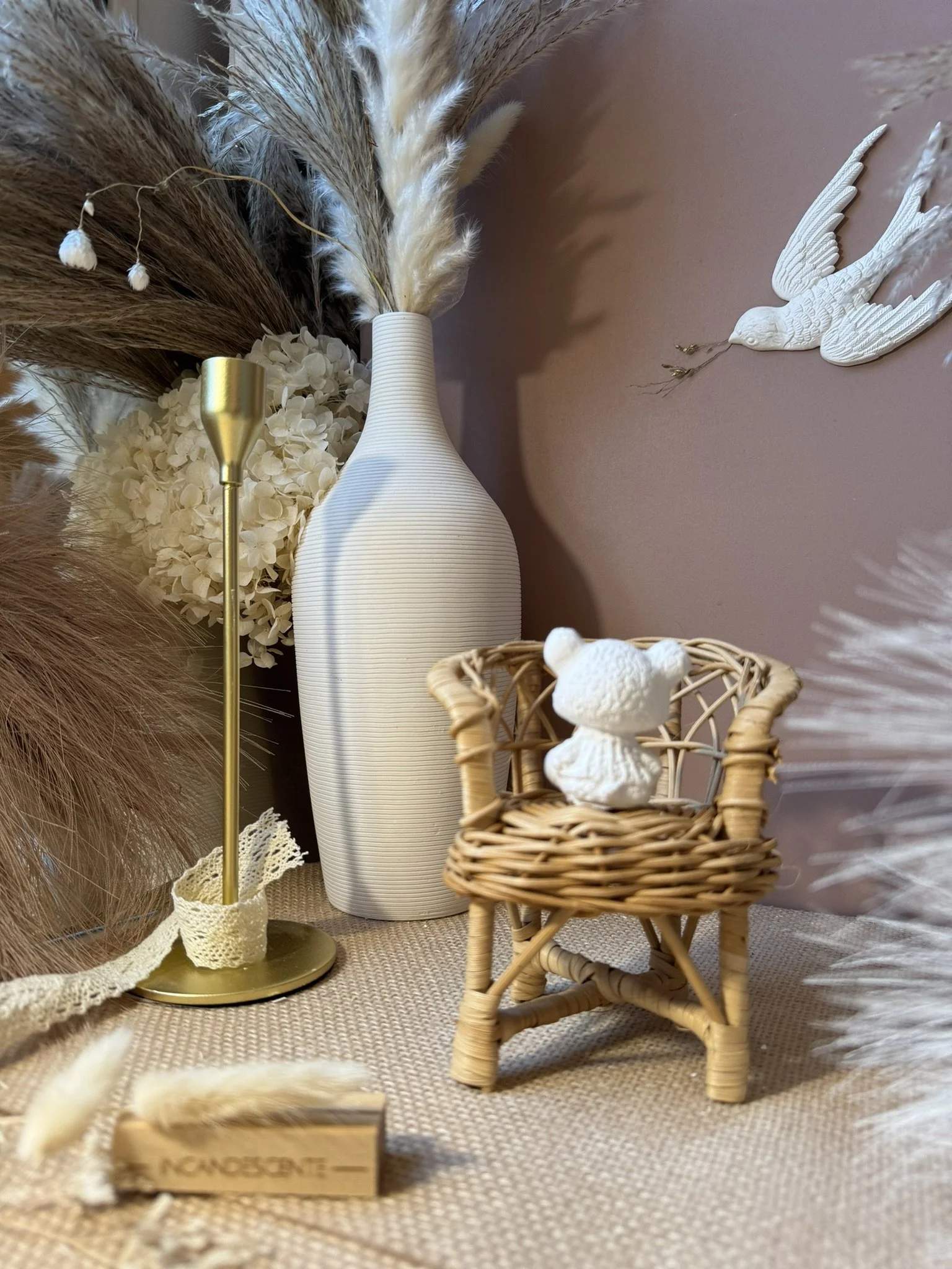 Petit pot rayures verticales bougie ou vase avec fleurs séchées en plâtre