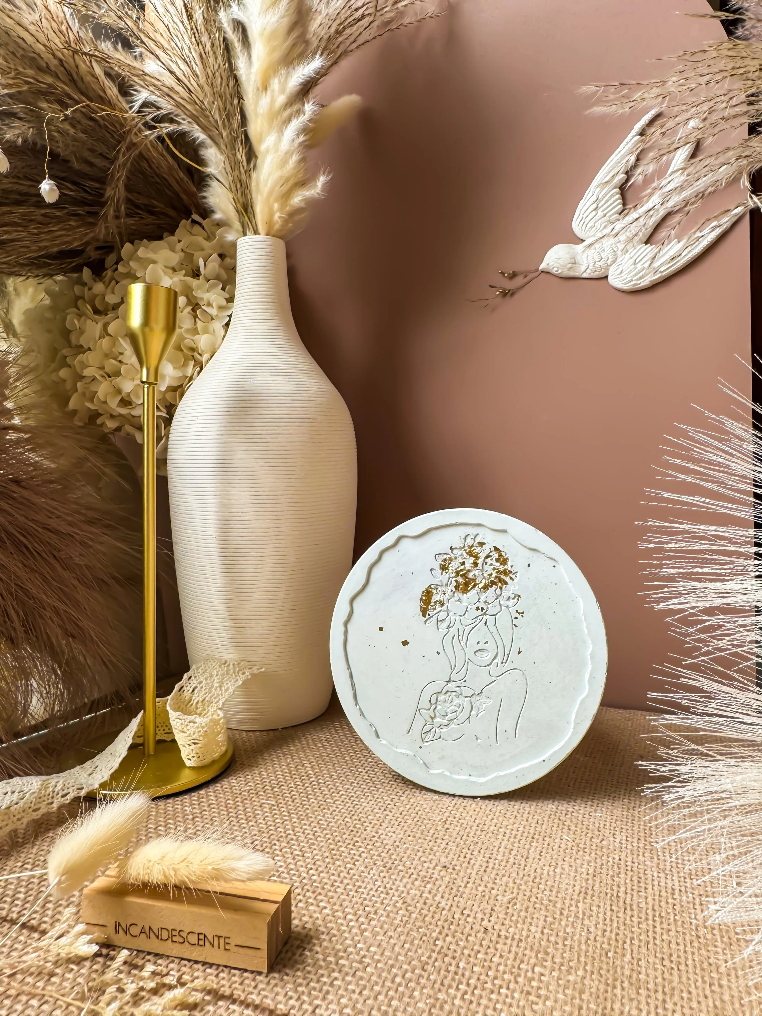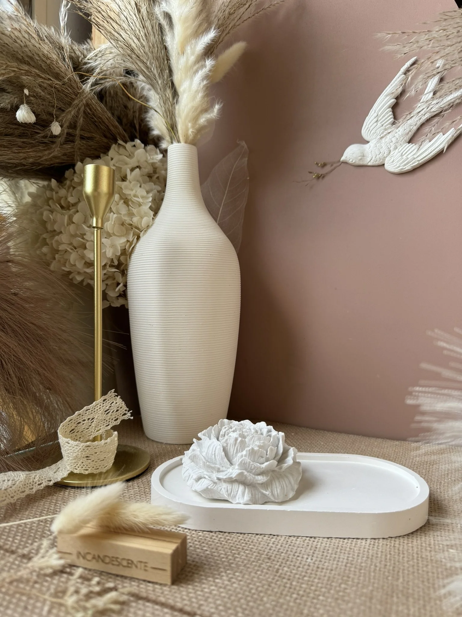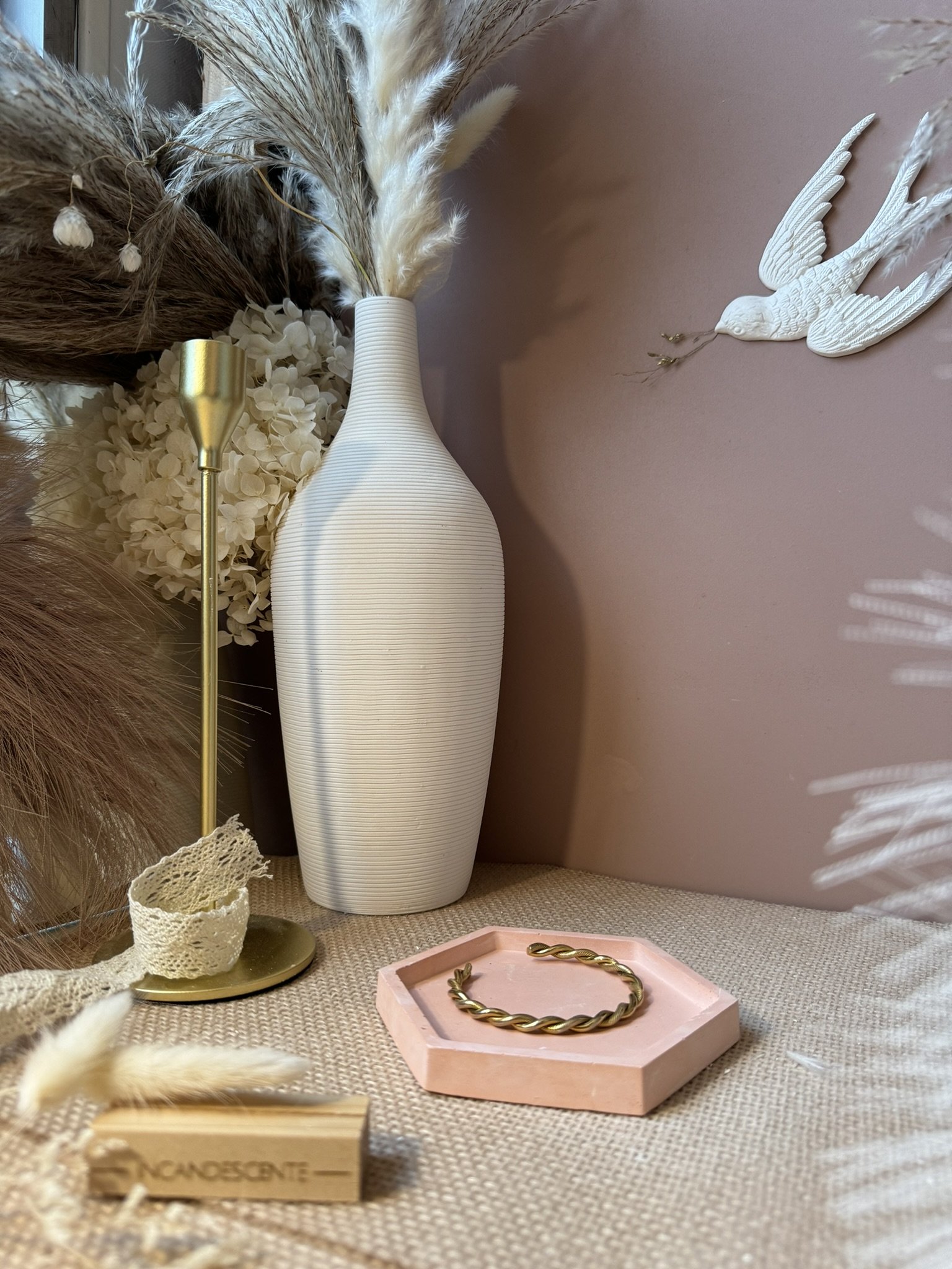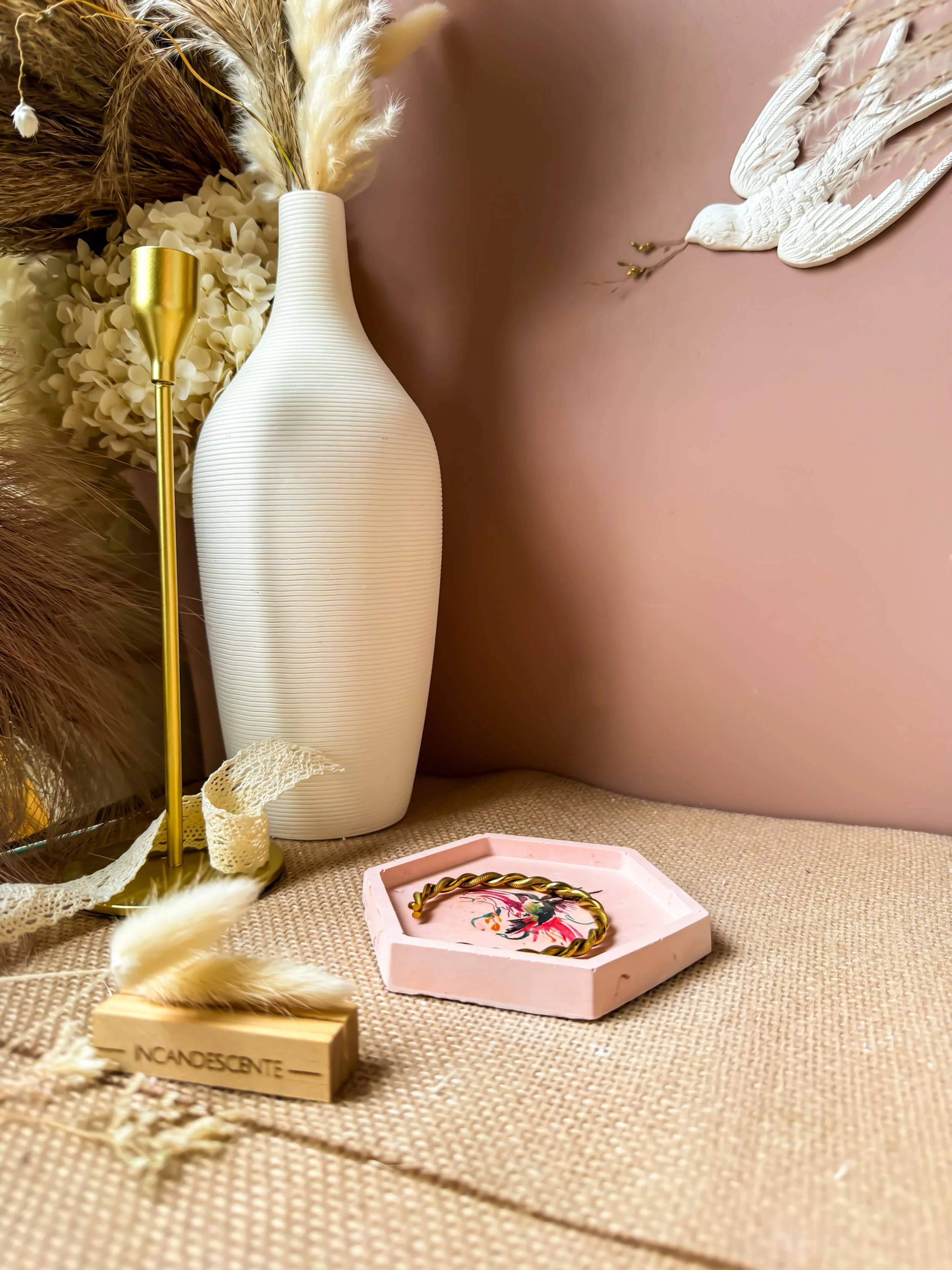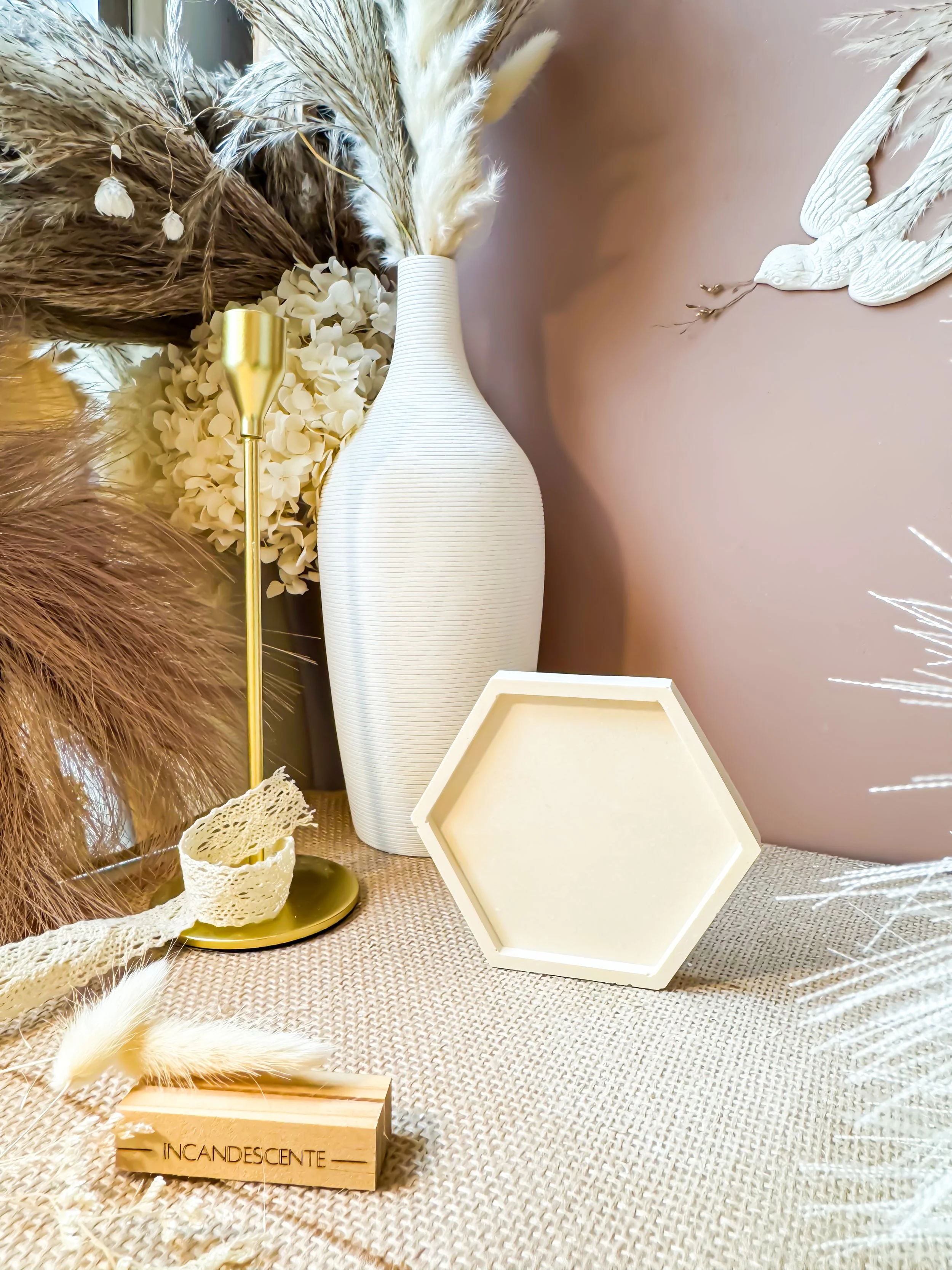 Plateau hexagonale, son cône porte bague en plâtre et son Blossom