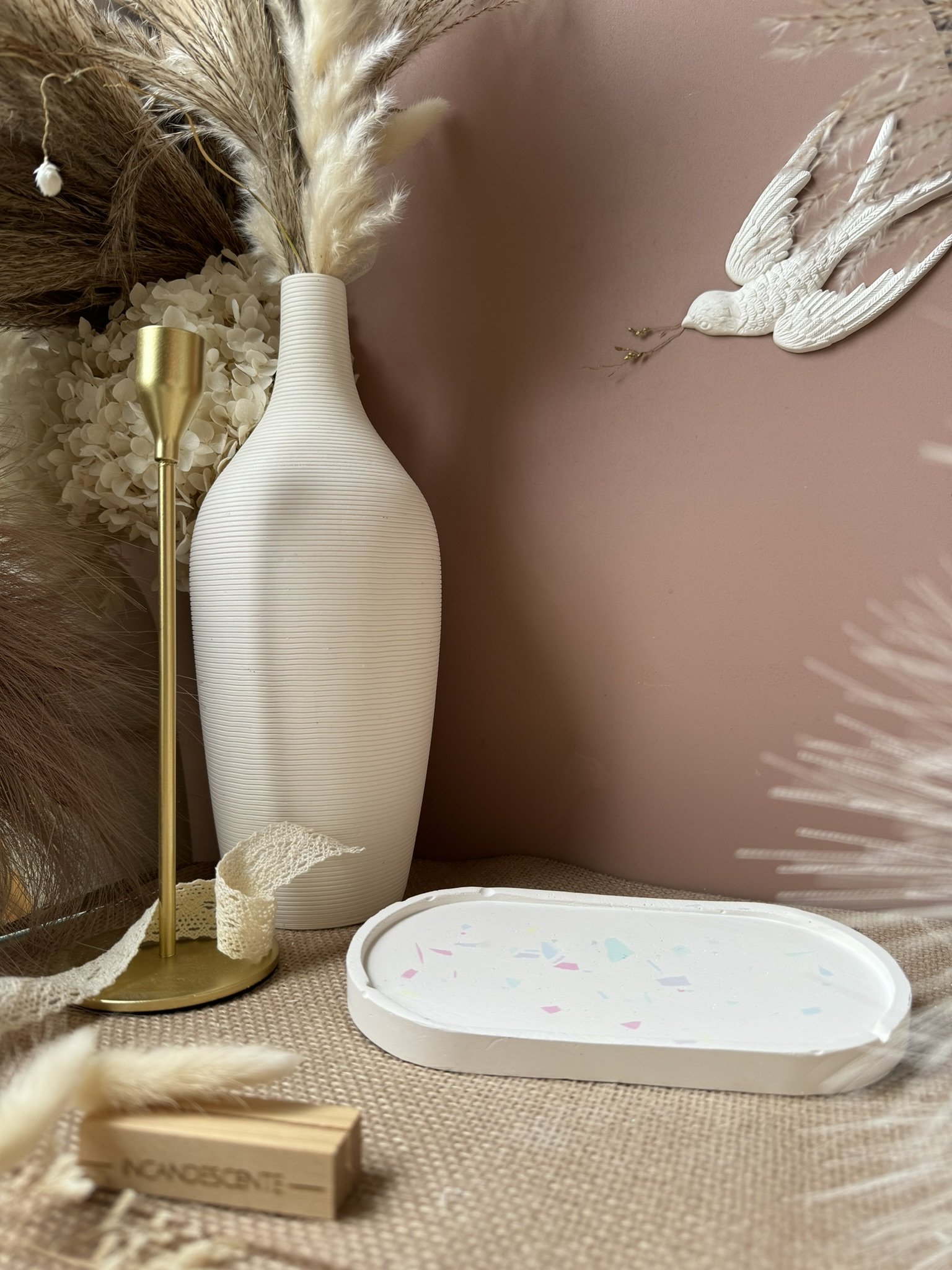 Plateau bi couleur ovale en plâtre à motif personnalisable