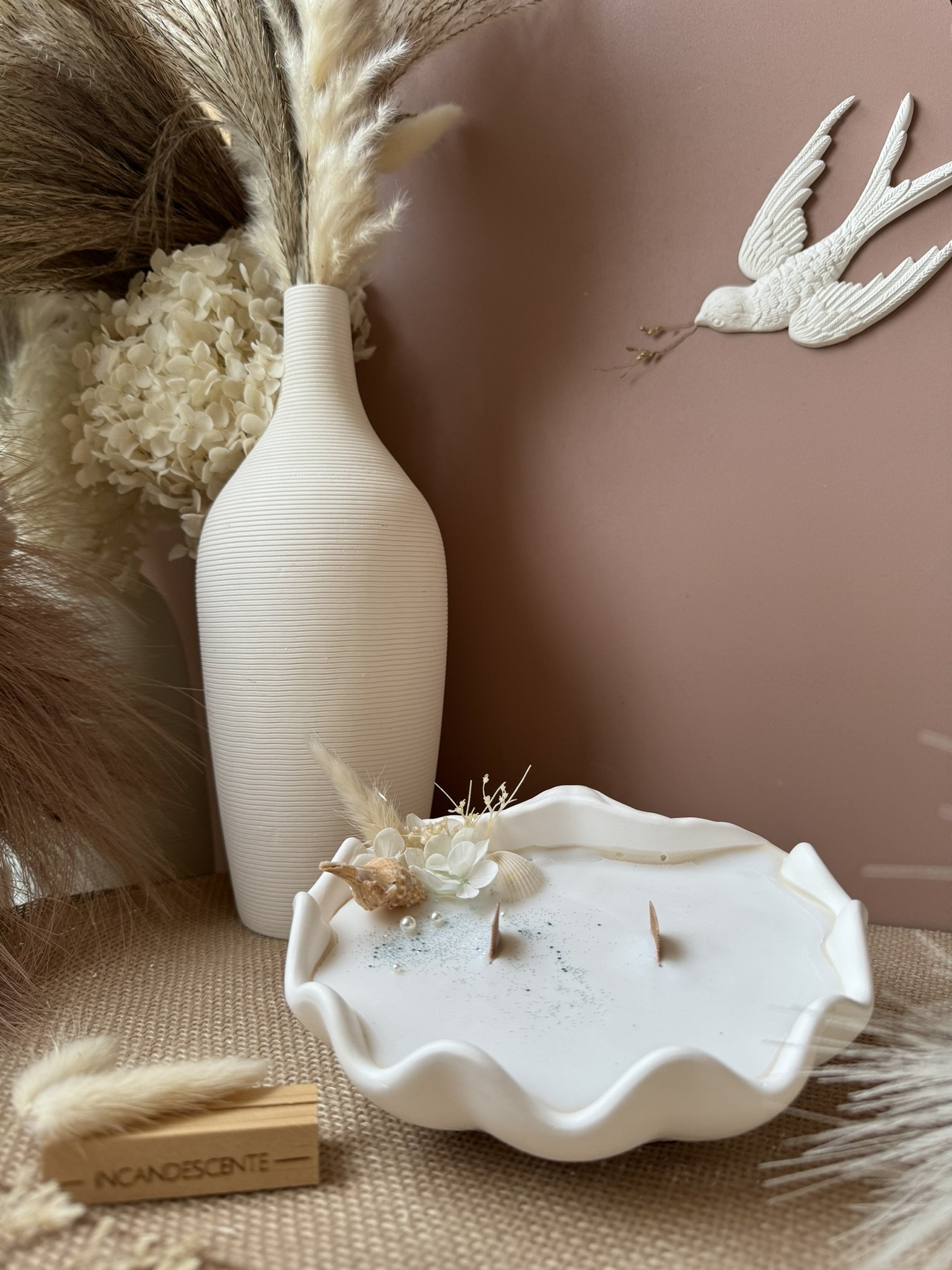 Apportez une touche à votre intérieur avec cet élégant décor en plâtre coulé dans notre atelier/boutique. Cet objet apportera la touche finale à votre décoration en laissant un voile parfumé. Coloris à personnaliser.